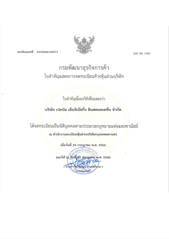 泰國分公司:偉柏工程安裝有限公司(WEIBO ENGINEERING INSTALLATION CO., LTD.)